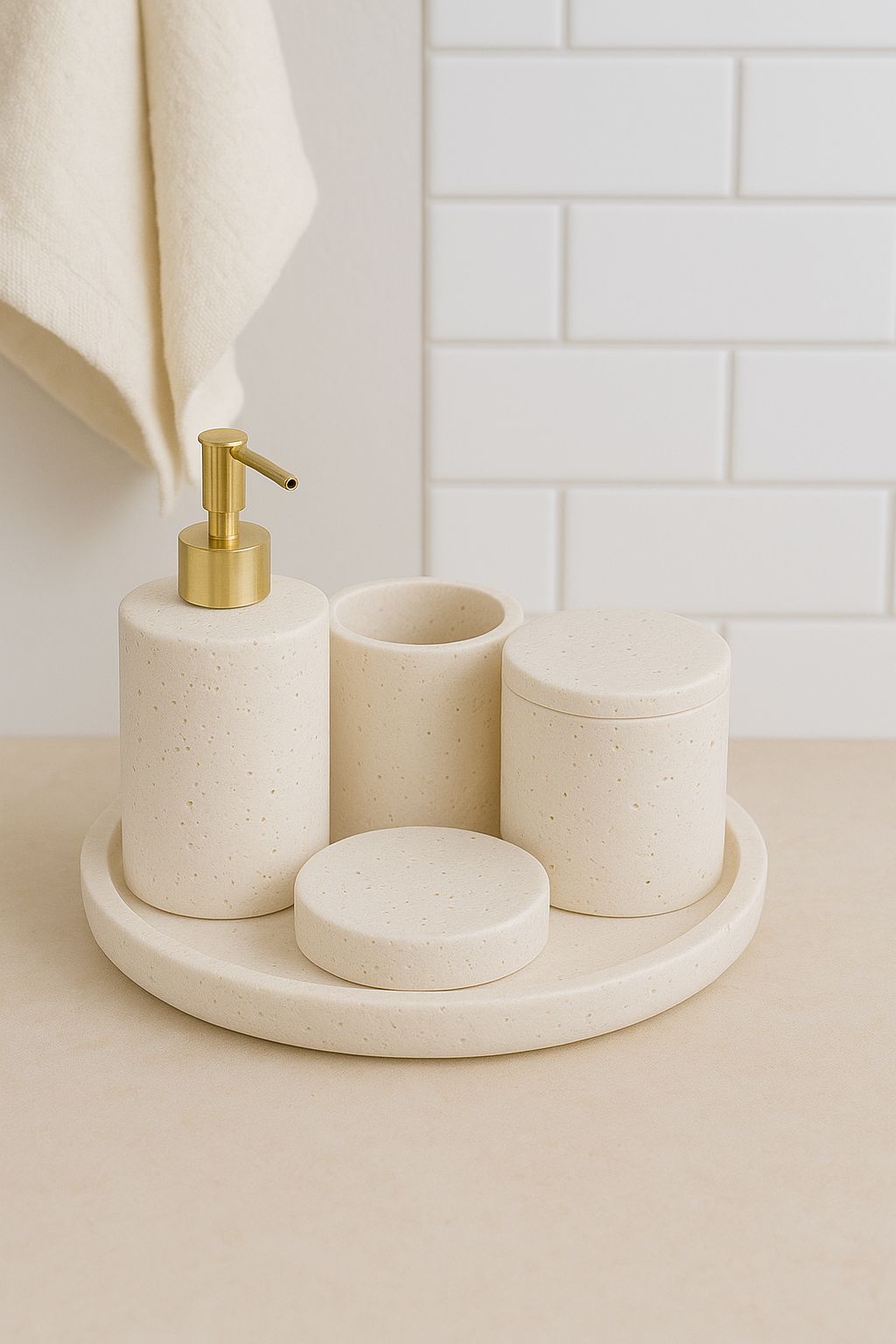 Doğal ve minimalist dekorasyon tarzlarını sevenler için ideal olan Traverten Banyo Seti, banyonuzda spa benzeri rahatlatıcı bir ortam yaratmanıza yardımcı olur. Sağlam ve dayanıklı yapısıyla uzun yıllar boyunca ilk günkü estetiğini korur. Banyonuza rustik ve modern bir hava katmak için bu eşsiz seti keşfedin ve sepetinize ekleyin.